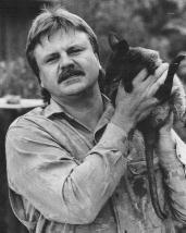 holding a baby swamp wallaby.